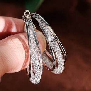 Mesh Twisted Hoop Earrings Inlaid Shiny Zircon Beautiful Pierced Earrings