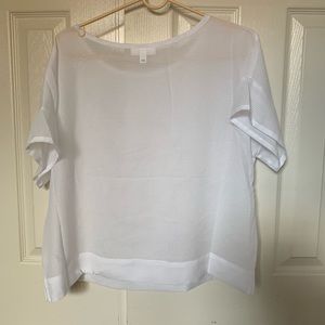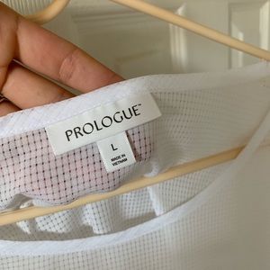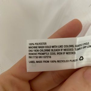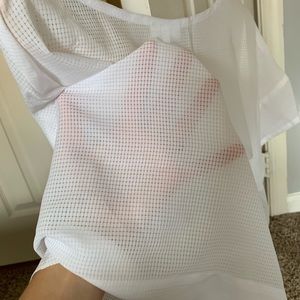 Polyester white mesh short sleevetee. Never worn. Slightly cropped. Polyester. Lightweight. Perfect condition