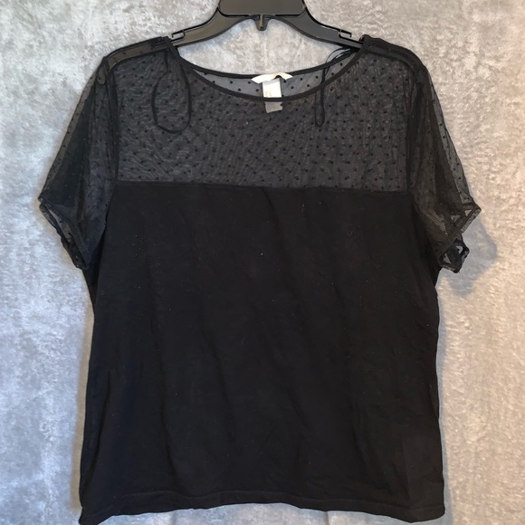 Polka dot mesh on top, bottom material stretches