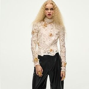 New with tags. All lace statement shirt. Great for bridal events. Very classy. Size S. Color Ecru.