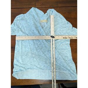 Mesh+Lace Draped Twist Long Sleeve Top Light V-Neck Gray Women's Size Extra Smal