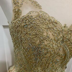 New with tags. Size L. (Adjustable cross straps on the back, Can fit size 8~12) A-Line dress  with beaded lace bodice & layered tulle skirt. Removable fabric piece on the back under the adjustable laced tie, Exposing your back skin.