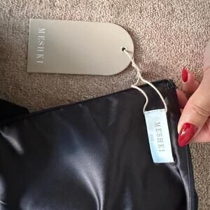Meshki black mini dress with invisible zipper back. Tags still attached. Styled with a belt which is not included
