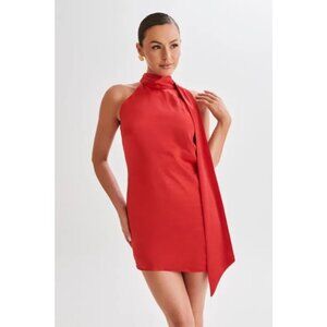 Meshki Aubriella Halter Mini Dress With Tie in Red