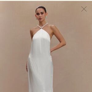 Meshki Blanche Satin Pearl Halter Maxi Dress