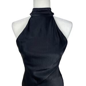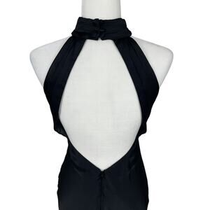 Meshki Claire Satin Drape High Neck Maxi Dress Gown Black Size XS Holiday Party