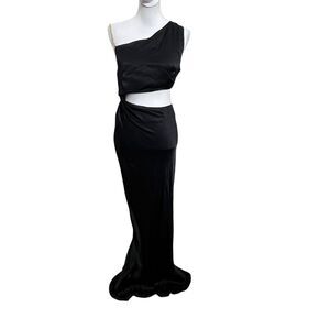 Meshki Clementine Dress Women’s Size Large Black Satin One Shoulder Cutout Maxi