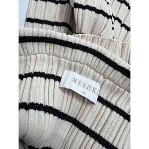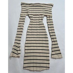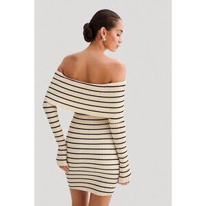 Description from retailer: The DOMINICA Off Shoulder Knit Mini Dress by Meshki is the epitome of elegance and allure. Its off-the-shoulder neckline and ribbed fabrication create a sophisticated silhouette, while the bodycon fit ensures a flattering look. With long sleeves and an overlay detail, it promises both style and comfort. Perfect for any special occasion, this dress combines modern charm with timeless grace.