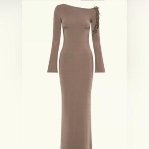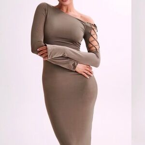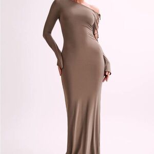 Meshki Gabby dress Elegant Brown One-Shoulder Dress mushroom color M #10