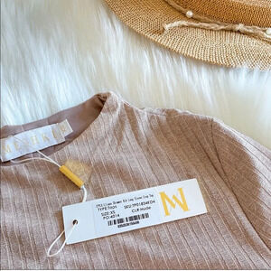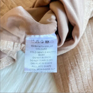 Meshki ILIANA Shimmer Rib Ribbed Long Sleeve Crop Top Nude Silver High Neck XS