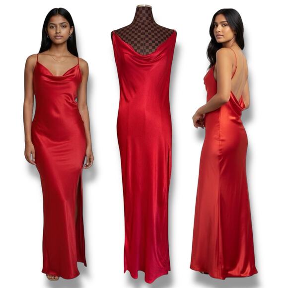 Meshki Jade Cowl Neck Backless Red Maxi Slip Dress Size XXL Goddess Glam Formal