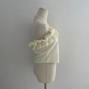 So feminine and flattering , the structured ruffles give a soft romantic look, while the off-shoulder design adds a modern touch. Pairs beautifully with tailored pants, a midi skirt, or jeans for that effortless clean girl vibe.