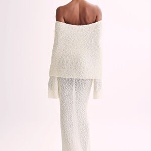 Meshki Marisol Off Shoulder Boucle Maxi Dress in Ivory.