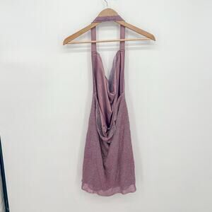 Meshki Meilani Low Back Diamante Mesh Dress Pink Small