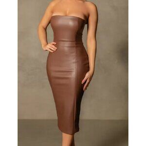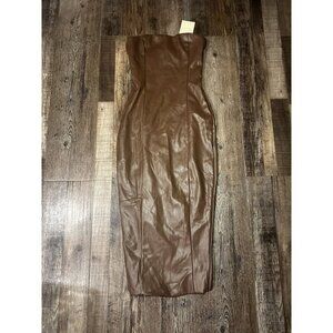 Meshki NWT Pamela Strapless Faux Leather Dress Chocolate Midi XS