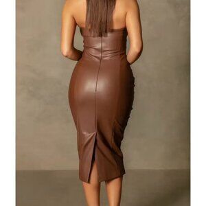 Pamela Strapless Faux Leather Dress in Chocolate is their latest snatched midi dress highlighting everyone's best asset's.