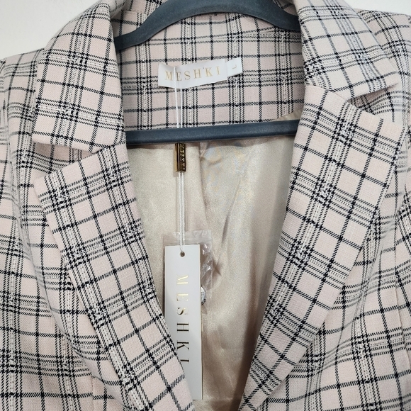 Meshki Neutral Nude Plaid Eda Cropped Blazer. Fully lined, one button closure.
