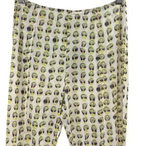 Meshki Nora Mesh Straight Leg Pant Sheer Alien Print Cream Green Size XL