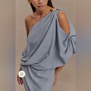 Chic one-shoulder dress by Meshki. Light blue hue. Modern and stylish design. Perfect for any event.