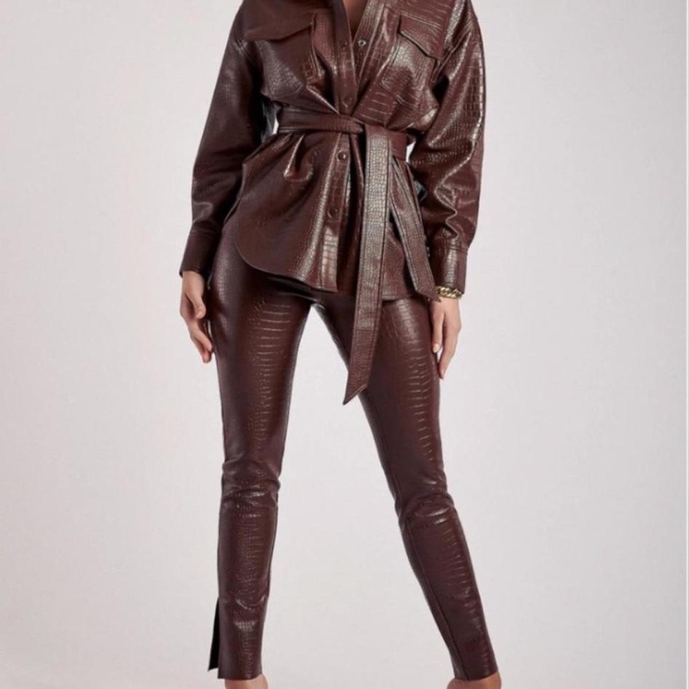 Meshki Annabelle crocodile leather pants with bottom slit. Brand new without tags.