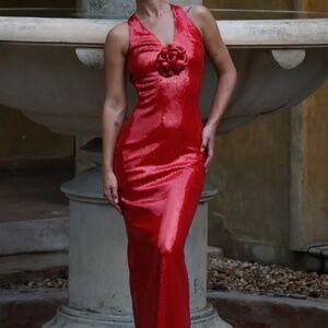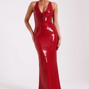 Meshki Red Eliza Rose Sequin Maxi Dress
