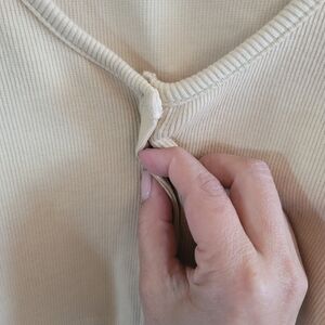 Meshki, Ribbed Long Sleeve Shirt, Cream, Size Small.
