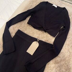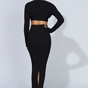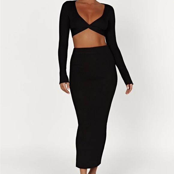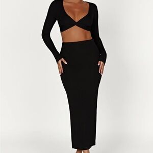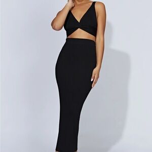Split Maxi Knitted Skirt and Top - Black
