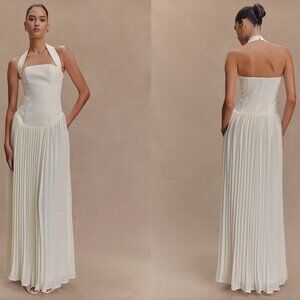 Meshki Stacie Pleated Halter Maxi Dress - Ivory, Size M