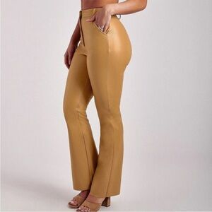 Meshki Straight Leg Tyra Faux Leather Pants Tan Small