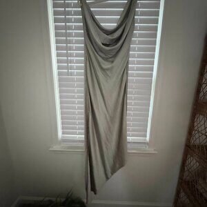 Worn once. Like new! Amazing fit and back strap was adjusted to solve for loose fit that folks complain about in the reviews of this dress. Wore to a wedding and received SO many compliments. Travels well as it doesn't wrinkle much.