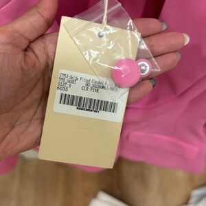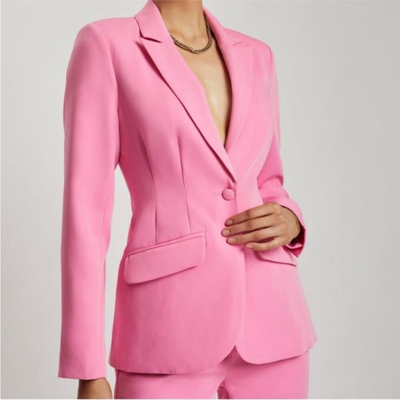 Meshki light pink small blazer, cinched waist, long sleeves, padded shoulders, brand new with tag