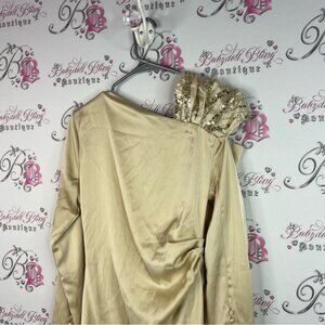 Meshki dress formal long sequins gold shiny shimmer luxe Cream Elegant Dress