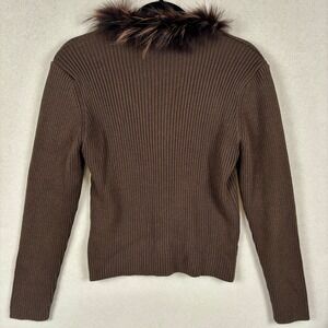 Mesmerize Wool Acaylic Brown Sweater with Rhinestones Fur Collar Women's Size L