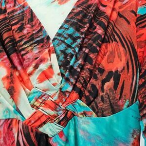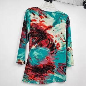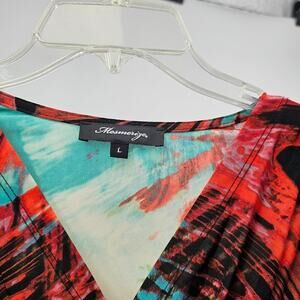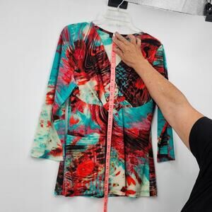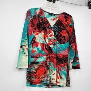 Mesmerize Ladies Top Size Large Retro Multicolor V Neck Pull Over Blouse Chemise
