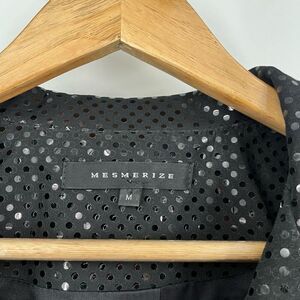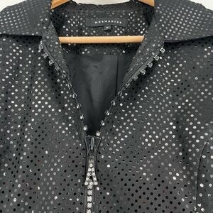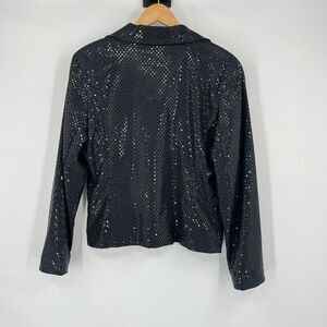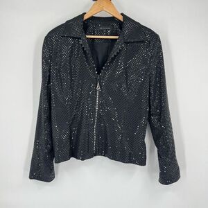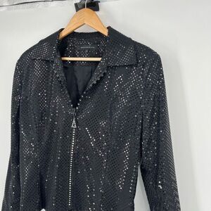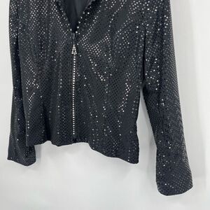 Mesmerize Zip Up Jacket Sparkly Sequin Collared Long Sleeve Black Womens Medium