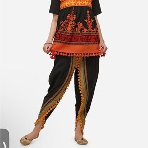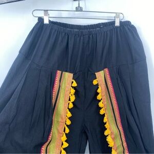 Mesmora Indian Tulip Pants Free One Size Dhoti Salwar Black Banarasi Border Ethnic