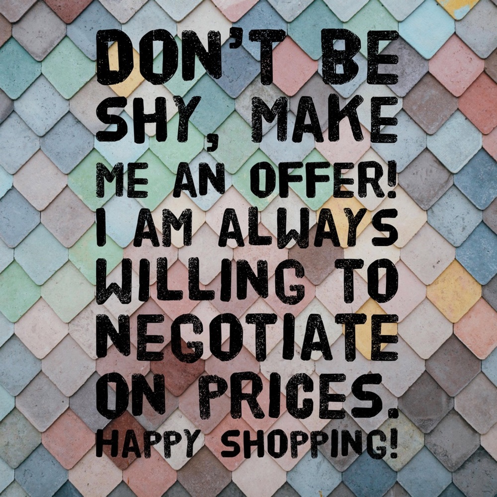 Don’t be afraid to make an offer on any item you see in the shop. I am always willing to negotiate on price and happy to talk with you if you have any questions.