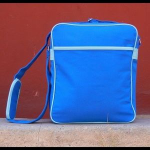 The bag is has a netted interior pocket, and a small zip pocket inside. It also has metal feet on the bottom. Shoulder strap is padded and adjustable.