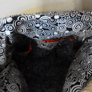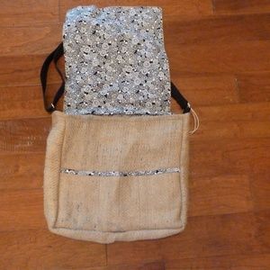 Unique Cross Body Messenger Bag! Upcycled from Coffee Bags. Fully lined with Vintage 1980's Virgin cotton. Three interior slip in pockets, 3 exterior slip in pockets. Magnetic snap on the exterior flap. Adjustable cross body strap. 16"l x 15"h x 3 1/2"w. Sachs and Moore. Handcrafted USA