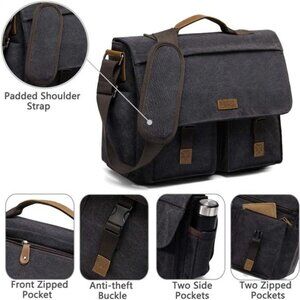 Messenger Bag for Men,Vintage Water Resistant Canvas Satchel 14 15.6 17inch