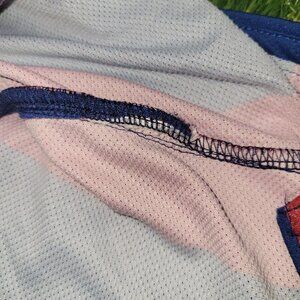 IT HAS A SLIGHT LOWER HEM ALTERATION AS SEEN WITHIN THE PICTURES. THE LOWER HEM WAS SIMPLY SEWN UP A BIT. IT STILL FITS AS A SIZE XL. MEASUREMENTS ARE AS FOLLOWS: