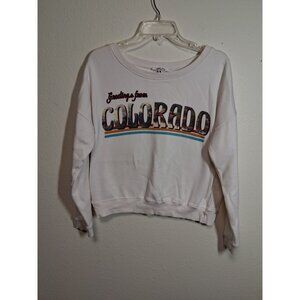Messy Bun Just Chillin Colorado Crop Sweatshirt Oversized Casual Travel Sz Large