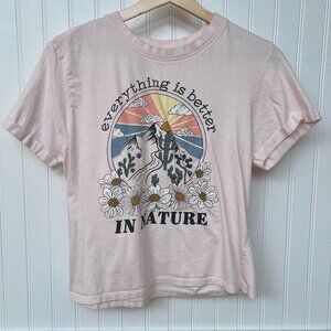 Messy Buns Lazy Days Graphic Tee Daisies Nature Pink Women's Desert Sunset