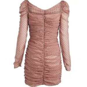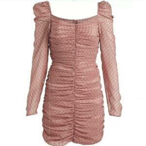 Mestiza NY Francesca Mini Dress Womens 8 Ruched Mesh Polka Dot Puff Sleeve Square Neck Bodycon Party Outfit