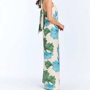 Flowy jumpsuit with wrappable paneling, allowing for convertible neckline styling