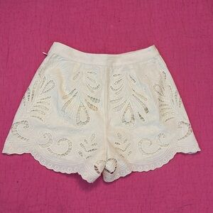 These elegant cream lace shorts are perfect for a chic and stylish look. The intricate lace design adds a touch of sophistication to any outfit. New, no tags