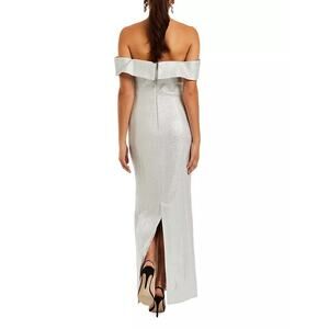 Mestiza New York Mona Silver Metallic Tweed Off the Shoulder Formal Gown 14