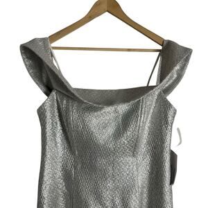 Mestiza New York Mona Silver Metallic Tweed Off the Shoulder Cocktail Gown 14