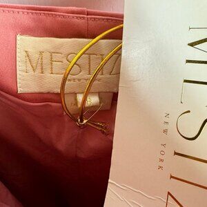 Mestiza New York Pink Satin Floral Appliqué Ruffle Gown Size 8