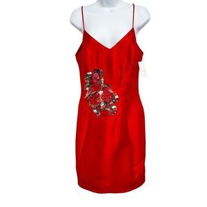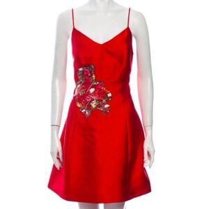 Mestiza Sleeveless Bell Cocktail Dress Flamingo Beaded Embroidery Red 8